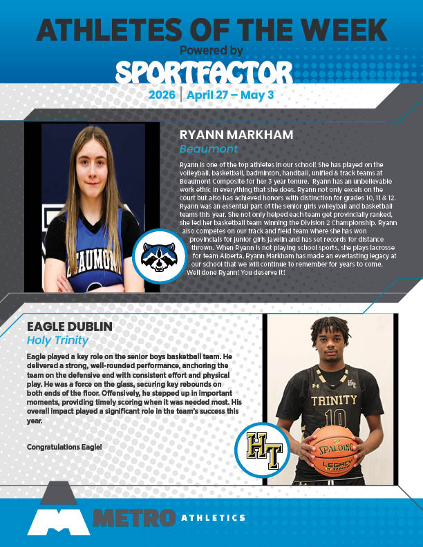 Athletes of the Week for April 27th to May 3rd Powered by Sportfactor