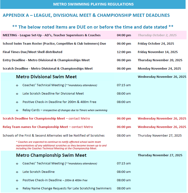 For past record holders, please refer to the Metro Swimming Playing Regulations Document.